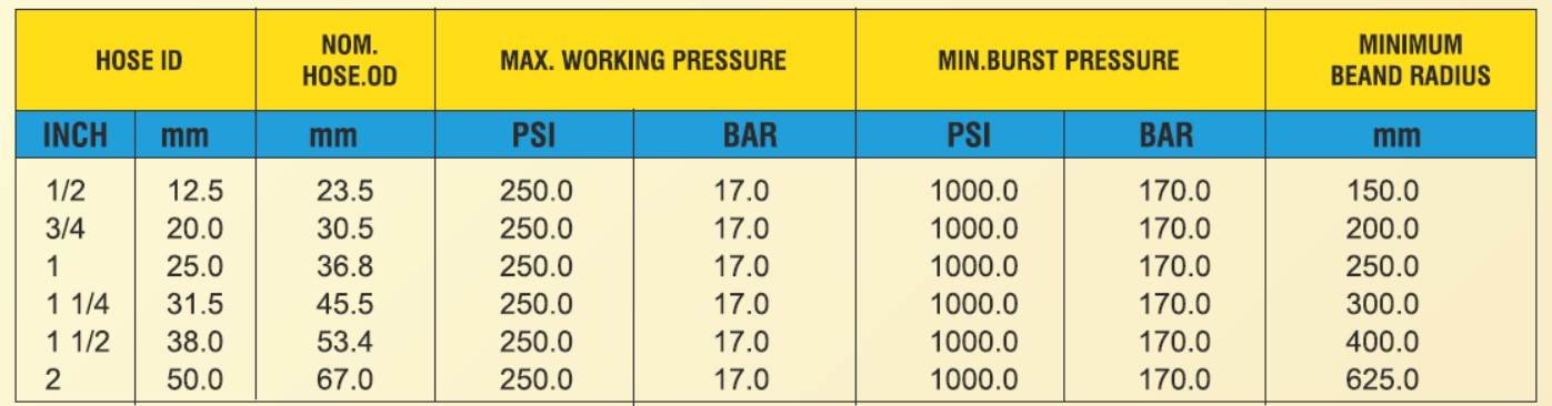 Reinforcement : One or, Two Braid of Brass coated high tensile steel wire.